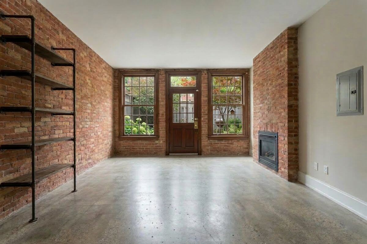 Exposed brick, metal accents